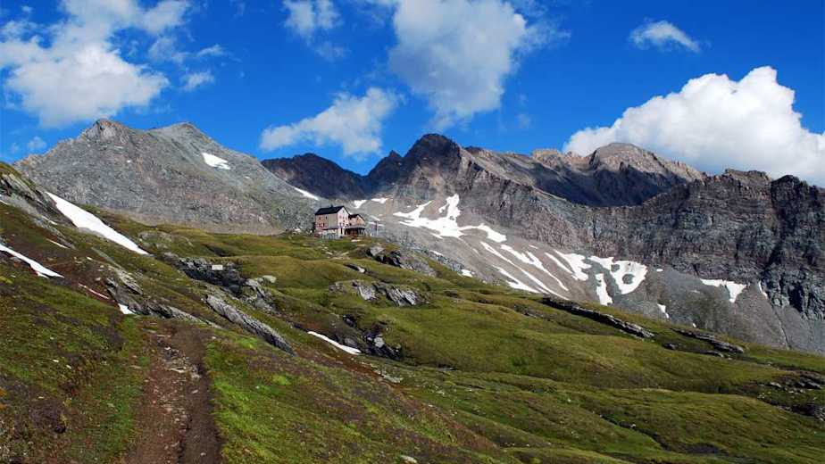 Wo man auf den Weg 514 trifft, hält man sich gerade aus und folgt dem Weg hinauf zum Gradötzsattel auf 2.826 m nördlich des Gradötzkogels, der 3.063 m hoch ist. Danach geht es abwärts, vorbei an einem kleinen See und direkt zur Sudetendeutschen Hütte auf 2.640 m.
