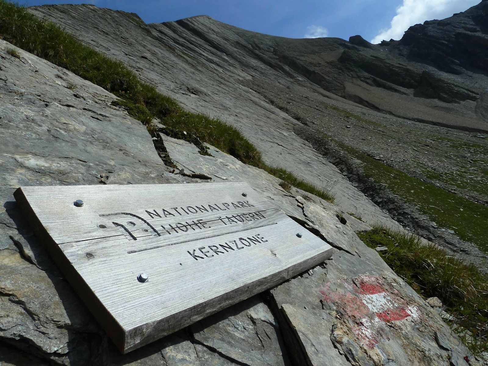 Bei der Gleiwitzer Hütte folgt man nun dem Weg 723 nach Norden. Am Hang unterhalb des Messerfeldkopfes erreicht man eine Wegverzweigung. Hier hält man sich links und steig zuerst steil, dann flacher zur Brandlscharte auf 2.371 m an.