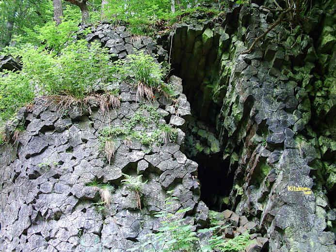 Nun geht es hinauf auf die Kalbe, von der man bei schönem Wetter bis in den Harz blicken kann. Man blickt hinunter zum Kalbesee und geht weiter zum Frau-Holle-Teich. Über den Eulenstieg wandert man wieder hinauf auf das Plateau. Durch den Wald geht man zur Viehhaushütte und weiter zur Kitzkammer. Hier sieht man fünf- bis sechseckigen Säulenbasalt. Es geht steil bergab und wieder hinauf zur Hausener Hute. Hier genießt man einen tollen Blick nach Westen und erreicht die beiden Gasthäuser am Hohen Meißner und den Parkplatz.