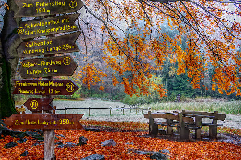 Die Premiumwege im Geo-Naturpark Frau-Holle-Land in Hessen führen über pfadige, naturbelassene Wege und bieten daher ein besonderes Wandererlebnis. Der Weg P1 führt zu den schönsten Plätzen des Hohen Meißners, dem König der Berge Nordhessens. Dabei besucht man märchenhaften Orte im Frau-Holle-Land.