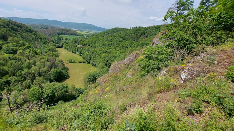 Nun geht man hinunter nach Abterode und besucht die Kirchenruine aus dem 14. Jahrhundert. Unweit des Weges sieht man den markanten Fels Abteröder Bär. Man wandert durch das Kupferbachtal zum Iberg und geht weiter hinunter ins Höllental und zum Parkplatz Nedderborn.