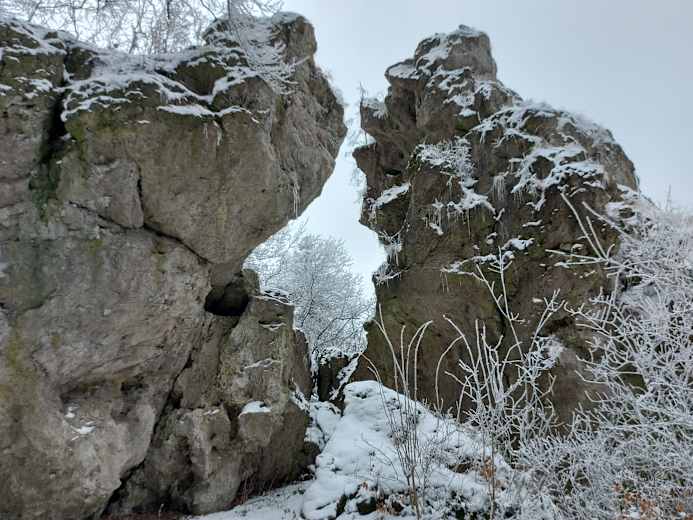 Blick durch die schneebedeckten großen Steine in ReichenbachFoto: Claudia Krabbes – CC-BY-SA