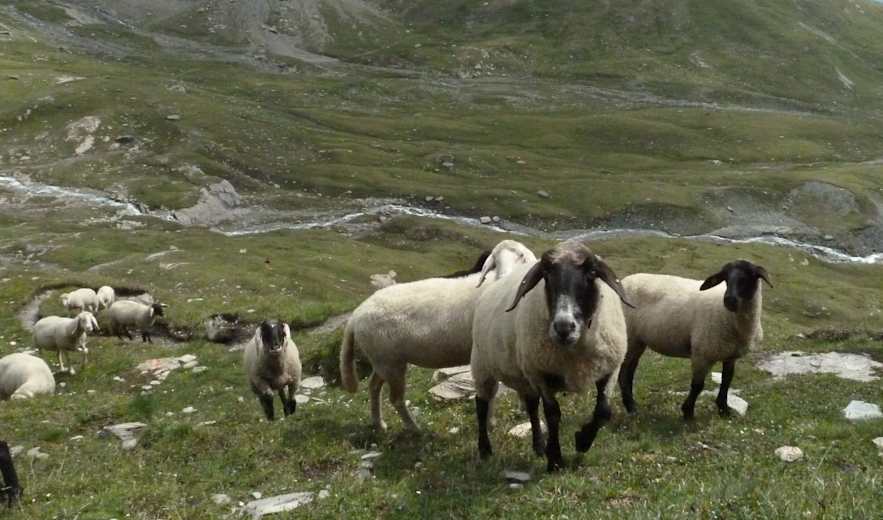 Am linken Ufer des Sees folgt man den Pfadspuren hinauf zum Pfandlschartensee. Meist wird man von den Schafen kritisch beeugt oder ein Stück begleitet.