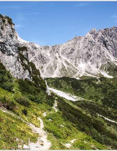 Durch Latschen, lichten Bergwald und typische Karstformationen geht es zum Schluss aufwärts bis zum Albert-Appe-Haus auf 1.663 m.