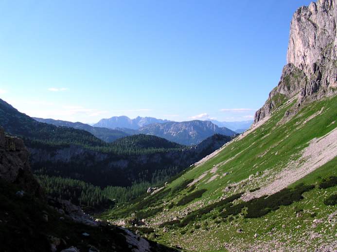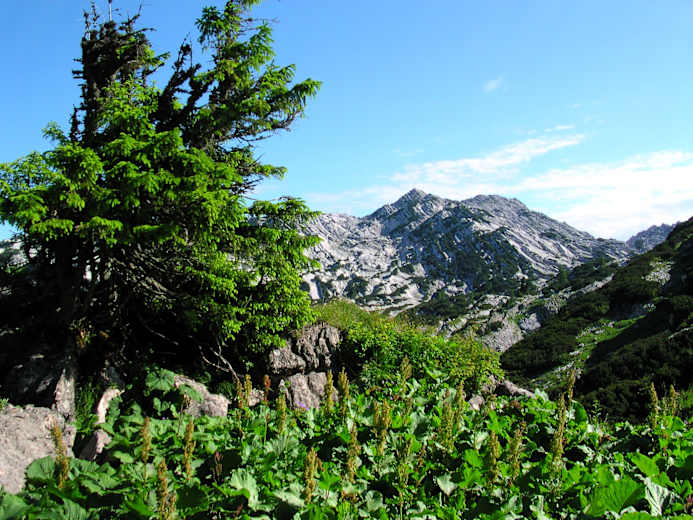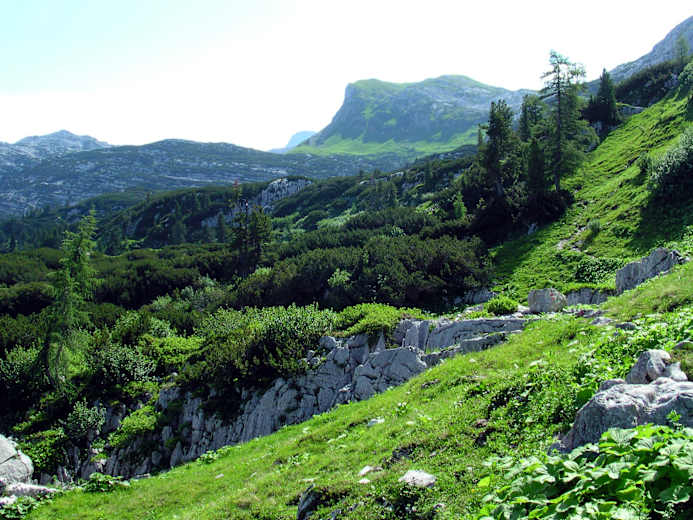 Vorbei am Jägerbründl und nördlich des Widerkarkogels geht es Richtung Osten. Hier beeindruckt die Weite des Toten Gebirges, dessen Plateau sich weit nach Norden hin ausstreckt. Interessant sind auch die bizarren Karstformationen, die das Wasser über die Jahrmillionen geformt hat.