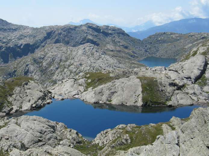 Vom Spronser Joch aus blickt man auf die beeindruckenden Spronser Seen mitten in den Bergen des Naturparks Texelgruppe; man nennt sie auch die „größte hochalpine Seenplatte“ mit rd. 10 Seen.