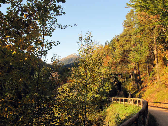 In Völlan, Höhe Bauernmuseum folgt man der Beschilderung „Völlaner Badl“. Der Waldweg führt direkt bis zum Gasthaus Völlaner Badl auf 862 m. Von dort geht man auf Steig Nr. 10 steil bergauf, durch Wald und Wiesen, weiter auf einem asphaltierten Fahrweg bis zum Ortsteil Platzers.