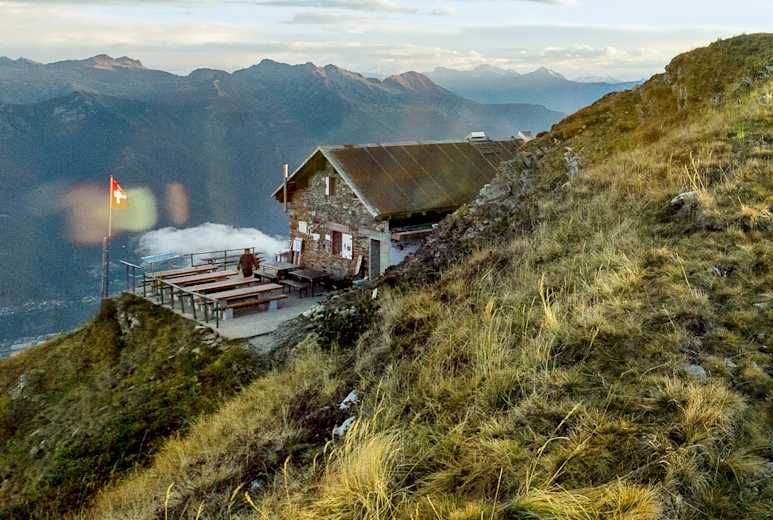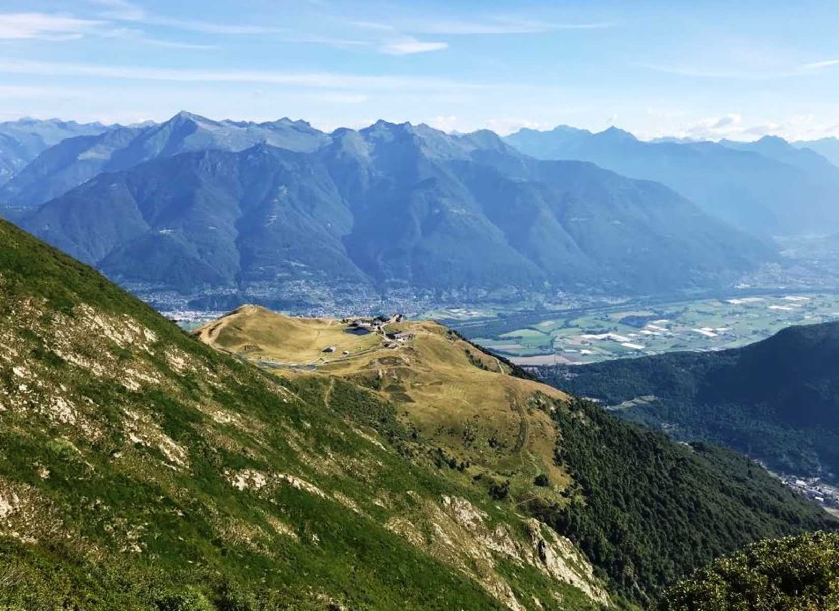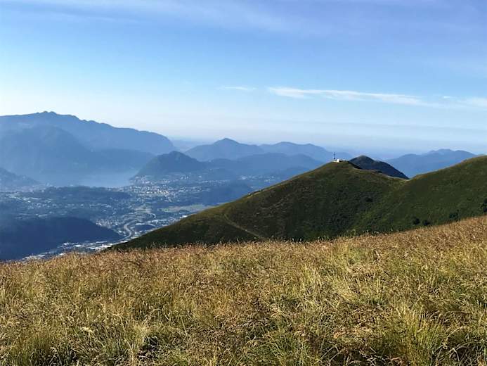 Über die Capanna Tamaro (1.867 m) geht es hinauf zum Gipfel des Monte Tamaro (1.962 m), der eine wunderschöne Aussicht auf den Lago Maggiore und die umliegenden Gipfel der Tessiner Alpen bietet.