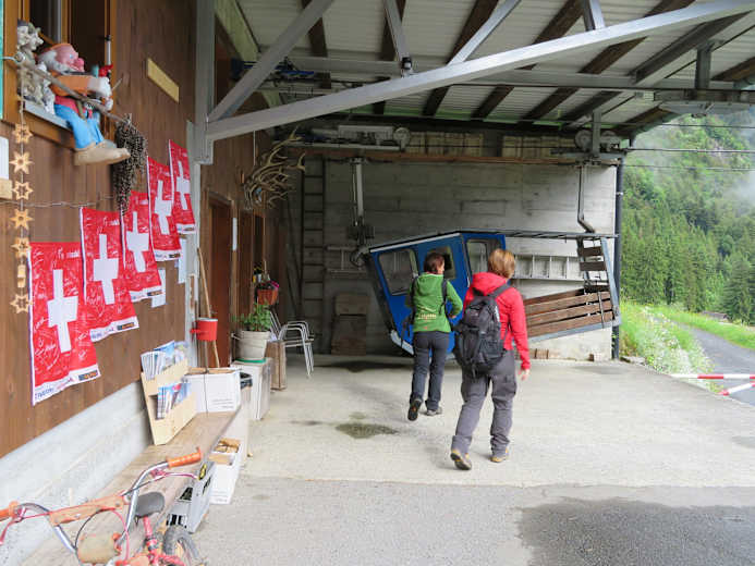 Am Weiterweg bringt einen die nächste Buiräbähnli-Fahrt nach Wolfenschiessen. Zurück am Ufer der Engelberger Aa, folgt man dem Fluss zum Dorfeingang und anschliessend durch Wolfenschiessen zur Brändlen-Bahn. Nach kurzem Fussmarsch ist das Etappenziel erreicht. Übernachtet wird im urchigen Bio-Bergbauernhof Brändlen.