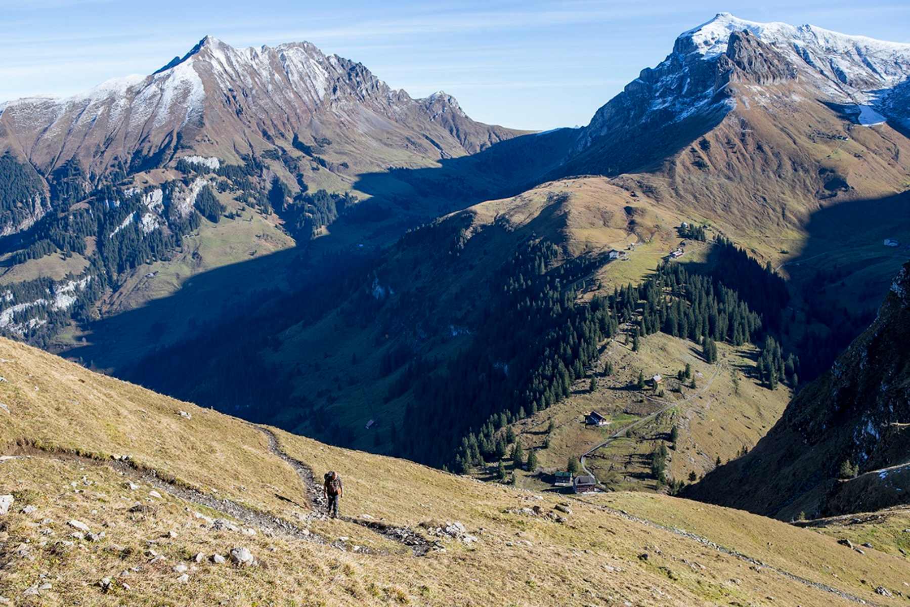 Wer noch immer nicht genug hat, verzichtet auf die letzte Bahn und wandert über Flühmatt hinab ins Tal.