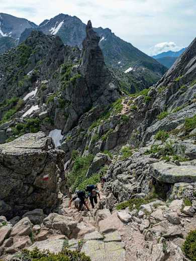 Die siebte Etappe des GR20 in Korsika ist mit Sicherheit eine der schönsten. Sie führt vom Refuge de Petra Piana zum Refuge de Manganu.