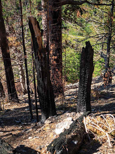 Verkohlte Bäume sieht man immer wieder. Brände sind keine Seltenheit. Foto: Daniel Kudernatsch