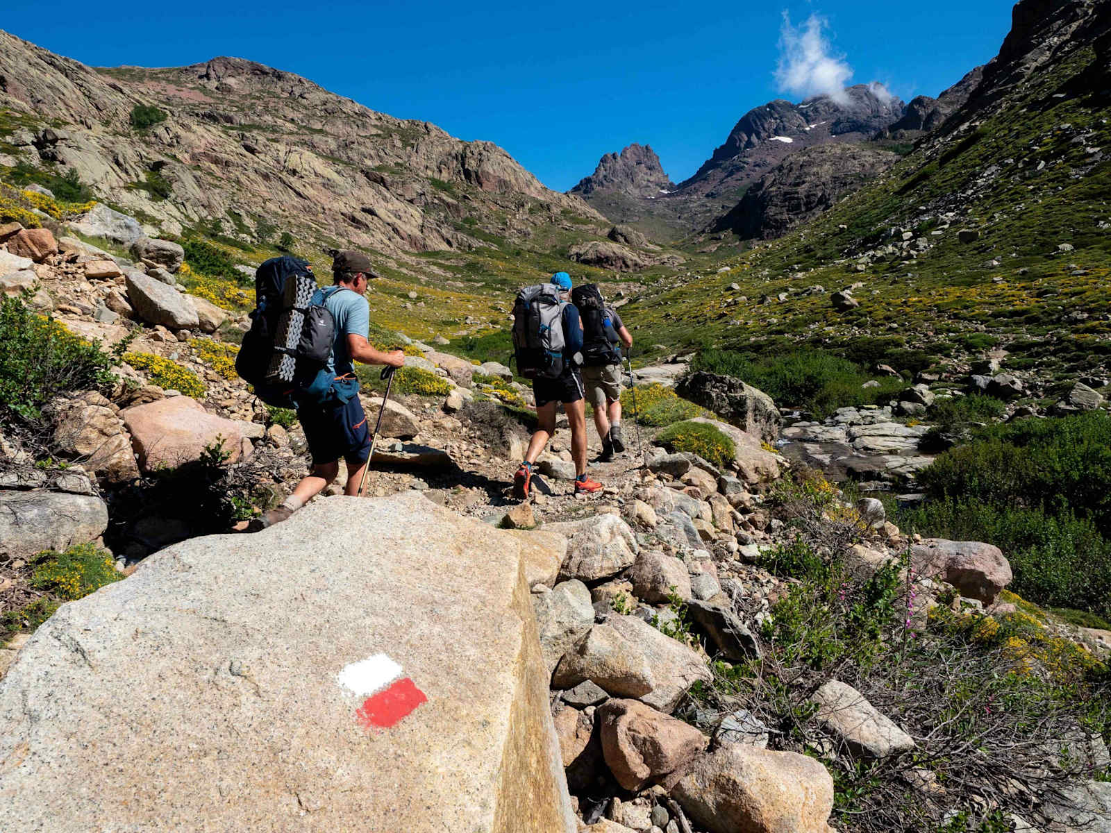 Traumhafter Ausstieg von Castellu di Vergio zum Refuge Ciuttulu di i Mori. Unbedingt hier den linken Weg nehmen – die Aussicht ist es wert. Foto: Daniel Kudernatsch Wasserfall kurz nach der Cascade de Radule. Foto: Daniel Kudernatsch Blick Richtung Westen unterhalb des Refuge Ciuttulu di i Mori. Foto: Daniel Kudernatsch Das Refuge Refuge Ciuttulu di i Mori. Foto: Daniel Kudernatsch Am Weg zum Refuge Tighiettu. Foto: Daniel Kudernatsch Leichtes Gepäck macht das Wandern angenehmer – der Vergleich macht sicher. Foto: Daniel Kudernatsch Als Alternative zum Refuge Tighiettu bietet sich die Bergeries de Ballone an. Foto: Daniel Kudernatsch Das Refuge Tighiettu. Foto: Daniel Kudernatsch Schlaflager im Refuge Tighiettu. Foto: Daniel Kudernatsch Kartenspielen im Refuge Tighiettu. Das klassische „Hosen oben“ kennt man auch auf Korsika. Foto: Daniel Kudernatsch Bildergalerie (10)