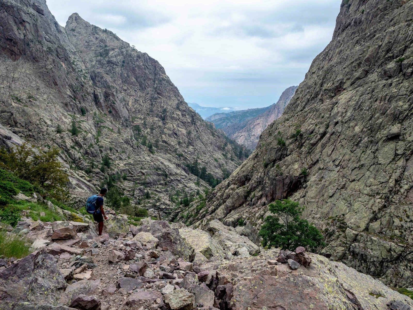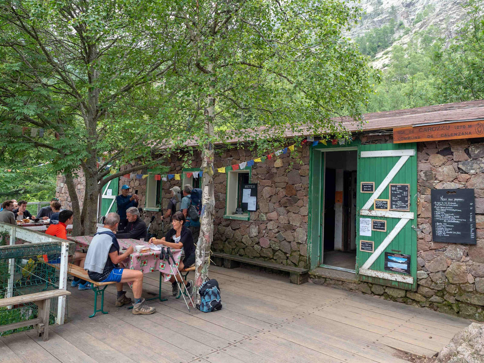 - Abstieg zur Spasimata-Hängebrücke. - Foto: Daniel Kudernatsch  - Blick Richtung Refuge de Carrozzu. - Foto: Daniel Kudernatsch  - Der Aufstieg von Haut Asco zur C´Bocca di Stagnu ist steil und mit ein paar Kletterpassagen gewürzt. - Foto: Daniel Kudernatsch  - Es heißt kraxln auf der Etappe von Haut Asco zur Auberge de la Foret de Bonifatu. - Foto: Daniel Kudernatsch  - Die glatten Steine und Felsen sind bei Nässe keine Gaudi – im Trocken aber bieten sie super Halt. - Foto: Daniel Kudernatsch  - Der Spasimata-Bach schneidet sich tief in die Felsen. - Foto: Daniel Kudernatsch  - Das Refuge de Carrozzu ist herzig und serviert gute Omeletts. - Foto: Daniel Kudernatsch  - Das Auberge de la Foret de Bonifatu hat einen tollen Campingplatz und sehr nettes Personal. - Foto: Daniel Kudernatsch  - Auberge de la Foret de Bonifatu: gegessen wird draußen. - Foto: Daniel Kudernatsch - Bildergalerie (9)