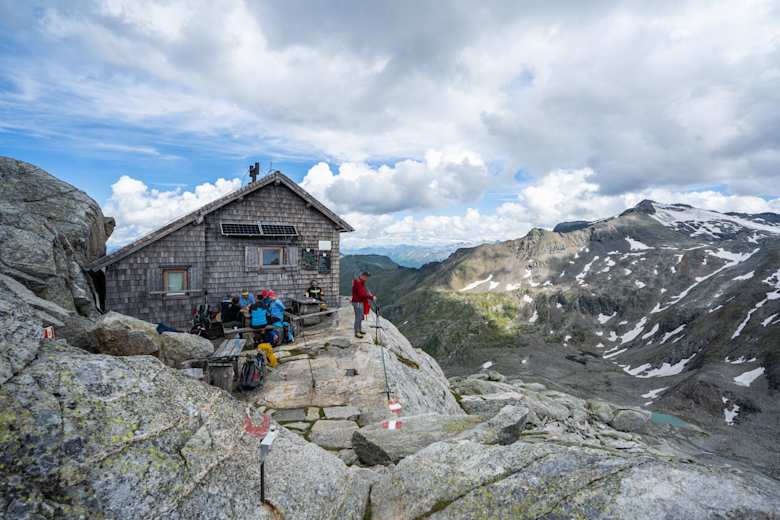 Vom Zittelhaus steigt man am besten über den Grat ab. Achtung: Der Gletscher im oberen Bereich kann je nach Witterung extrem eisig sein! Danach folgt man dem Weg zum Teil über den Gletscher und im Mittelteil mit einigen seilversicherten Passagen hinunter zur Rojacher Hütte - der kleinsten bewirtschafteten Schutzhütte des Österreichischen Alpenvereins.
