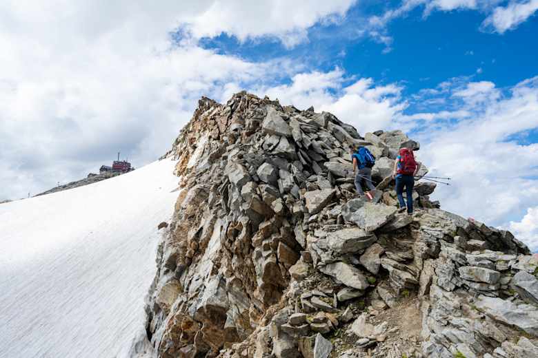 Ab der Niederen Scharte kann man eine Variante über das Schareck, 3.122 m, machen. Dort gilt es allerdings, einige kurze ausgesetzte Passagen zu meistern.