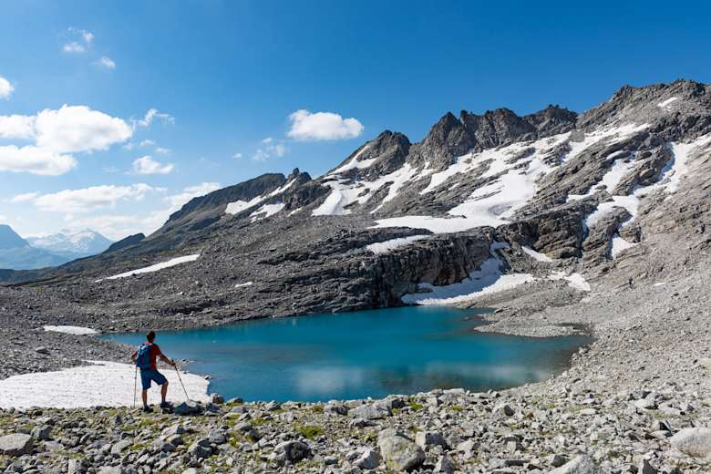 Von der Mindener Hütte geht es nun unterhalb des Gamskarlspitzes vorbei am Grünecker See und dem Kleinen Tauernsee weiter. Man passiert das Luggertörl auf 2.379 n und erreicht bald darauf das Hannoverhaus auf 2.565 m.