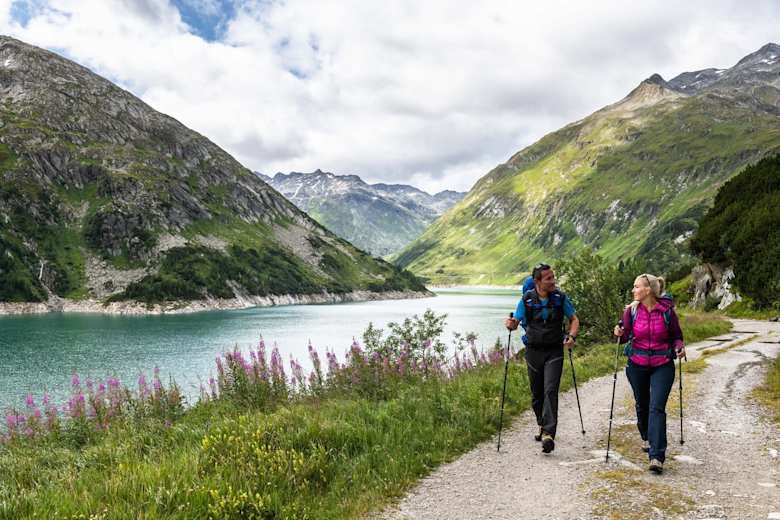 Gemütlich geht es auf das letzte Wegstück, das auf breitem Weg entlang des Stausees bis zur Kölnbreinsperre führt.