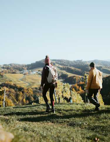 Hier nimmt man nun den rechten Weg, Nr. 553, Richtung Poschkogel und Poschalm. An der Weggabelung biegt man aber links auf dem Weg 578 B ab und wandert durch den Wald leicht aufwärts bis zum Handhöhkreuzt. Man bleibt auf dem Weg, der leicht nach rechts und wandert wieder zurück zur Weinebene, wo die Gösler Hütte zur Einkehr einlädt.