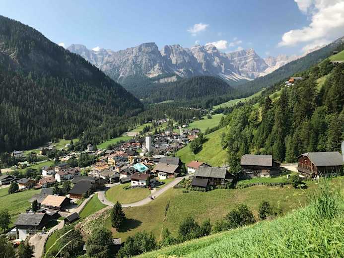 Blick auf das ladinische Bergsteigerdorf Lungiarü Foto: Christina Schwann, ökoalpin