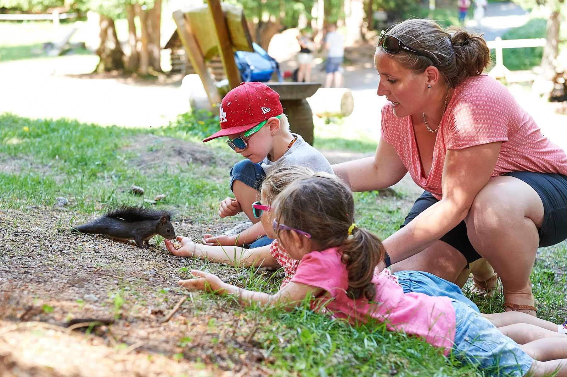Leichte Familienwanderung in den Plessur-Alpen Graubündens: Auf knapp 2 km lassen sich die putzigen Tierchen auf dieser eindrücklichen Wanderung in Arosa beobachten, studieren und auch füttern. Informationstafeln mit kindergerechten Rätseln vermitteln spannendes Wissen zu den Waldbewohnern.