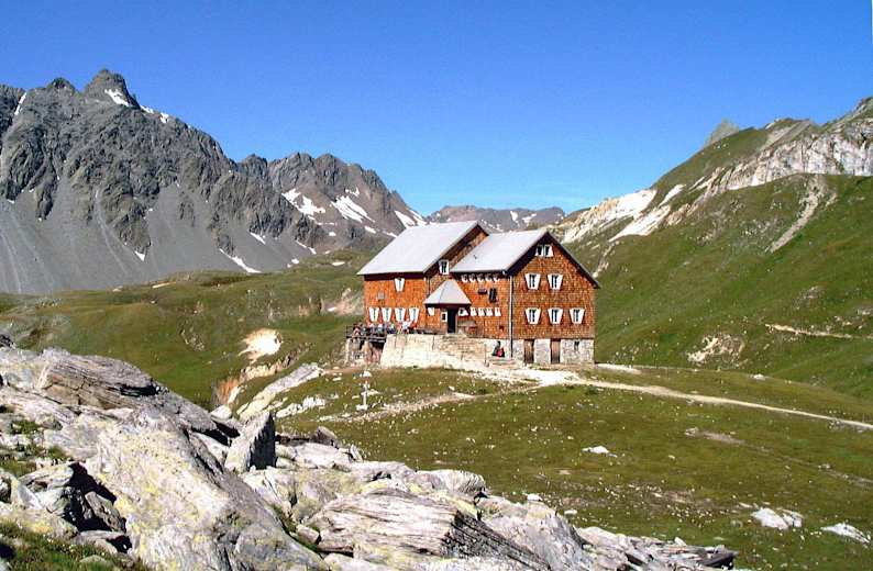 Waren die Täler bisher schon teilweise steil, so gleicht das Dabertal fast einer engen Schlucht.Bei einer kleinen Jagdhütte wird das Tal wieder weiter und der Weg führt links direkt an der Jagdhütte hoch durch eine herrliche Hochgebirgslandschaft später an der Daberlenke(2.659 m) vorbei, auf die am schönen Bödensee reizvoll liegende Neue Reichenberger Hütte zu.