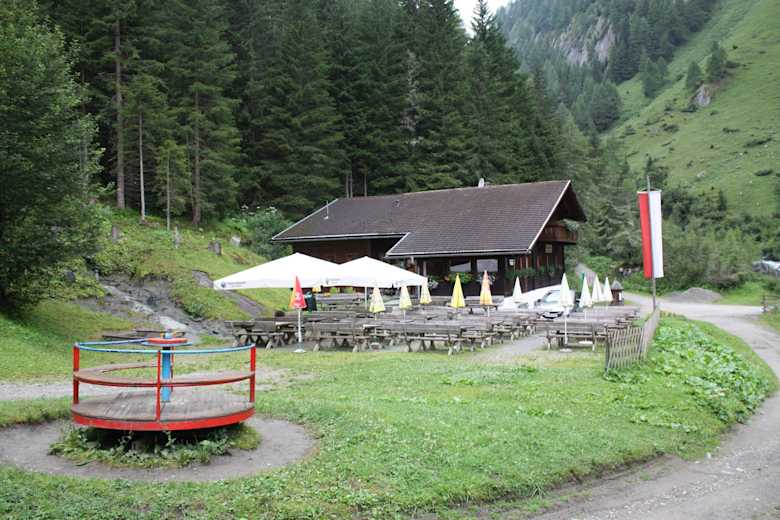 Schon bald windet sich der Pfad durch Wiesen am Großbach entlang, bis er an der (unbewirtschafteten) Großbachalm auf einen Forstweg stößt. Immer wieder wird nun der Blick frei durch das Großbachtalhinab ins Umbaltal zur kleinen aber feinen Pebellalm am Fuß der Umbalfälle. Nun sind es nur noch 30 Minuten entlang des Güterwegs zurück zum Parkplatz in Ströden.
