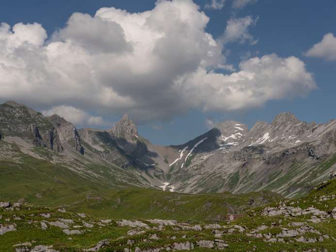 Dort rechts halten und über das Riedbödeli den Fuss von Hängst und Pfaff queren. Wenig später ist bereits die Glattalphütte (1.896 m) erreicht, wo bequeme Sonnenstühle warten.