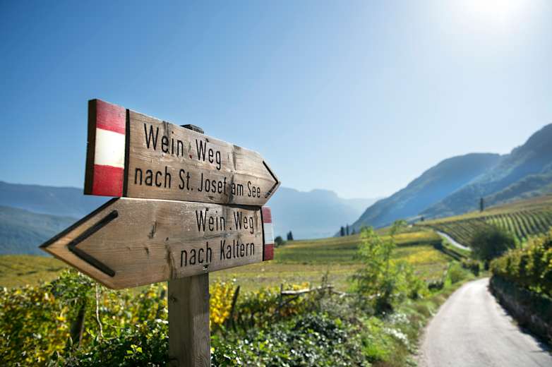 Der wein.weg-Kaltern entlang der Südtiroler Weinstraße im Süden Südtirols (Überetsch-Unterland) bietet sich dafür besonders gut an. Er zieht in Form einer Achterschleife um das Dorf Kaltern. Man kann entweder beide Schleifen - die eine über den Rundwanderweg zum Kalterer See, die andere in Richtung Oberplanitzing gehen, oder auch nur eine der beiden, denn sie kreuzen sich im Ortskern von Kaltern.