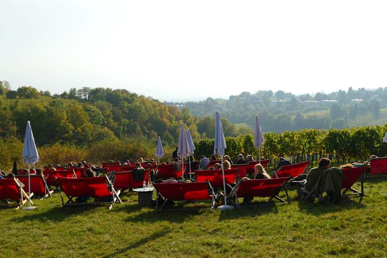 Blick über die Weinberge auf Wien Foto: weinwandern.at Chill out hoch über Wien Foto: weinwandern.at Gut zu sehen: der DC-Tower Foto: weinwandern.at Auch die Donau sieht man von den Weinbergen aus gut. Foto: weinwandern.at Der Leopoldsberg Foto: weinwandern.at Wien-Reisenberg Foto: weinwandern.at Sonnenuntergang über Wien Foto: weinwandern.at Immer gegenwärtig: der Blick auf die Stadt Wien. Foto: weinwandern.at Schöne, reife Trauben Foto: weinwandern.at Bildergalerie (9)