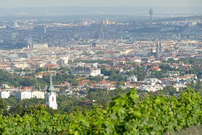 Diese Weinwanderung am nordöstlichsten Ausläufer der Alpen verbindet die berühmten Wiener Weinorte Salmannsdorf, Neustift am Walde, Grinzing und Nußdorf. Der Weitblick reicht über die Weinstöcke hinweg bis zu den Wiener Großstadtgipfeln Donauturm, Milleniumtower und DC Tower und weiter hinten bei Schönwetter sogar bis zu den Kleinen Karpaten und rechts daneben Braunsberg und Hundsheimer Berg. Angesichts der weitläufigen Weinflächen und zahlreichen Heurigen wird einem die Einzigartigkeit Wiens als Metropole mit nennenswertem Weinbau so richtig bewusst.