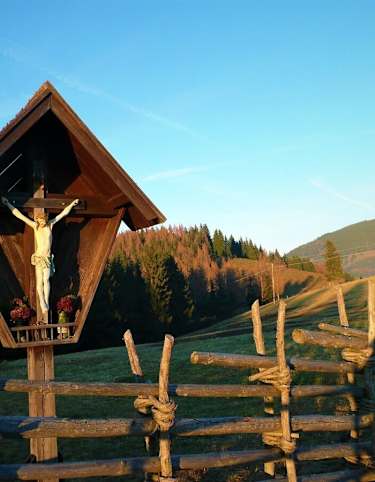 Der Kreuzberg ist ein Teil des Eichbergs in Leutschach an der Weinstraße, unweit der Südsteirischen Weinstraße. Den Rundwanderweg startet man z.B. direkt bei der Kreuzbergwarte (633 m). Erstes Ziel: die 117 Stufen hinauf zur Aussichtsplattform. Der Aufstieg lohnt sich definitiv: der Rundumblick reicht von der Koralm bis nach Bad Gleichenberg, vom Grazer Bergland bis zum Pohorje in Slowenien.