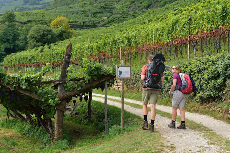 Südtirol pflegt eine sehr lange Weintradition und der Kurtatscher Weinlehrpfad ist der älteste in der gesamten Region. Er führt vom Ortszentrum von Kurtatsch bis nach Entiklar.
