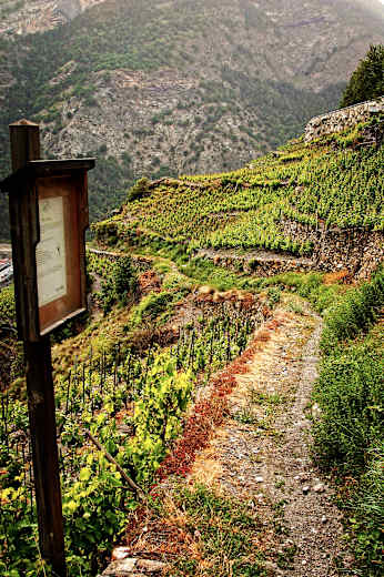 Unterhaltsame Themenwanderung im Wallis durch Europas höchsten Weinberg. Auf rund 40 Informationstafeln zwischen Visp und dem Heidadorf Visperterminen erfährt man alles Wissenswerte über Weine, deren Rebsorten, Erziehungsformen, Anbaumethoden, sowie Land und Leute.
