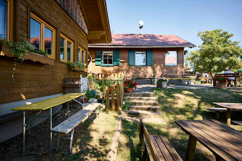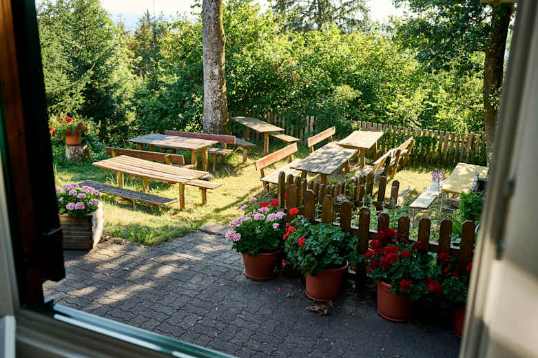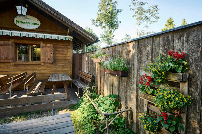 Der Gastgarten der Pettenfirsthütte Foto: Raphael Gabauer