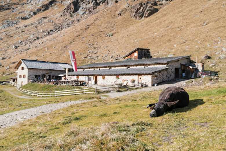 Landschaftlich beeindruckend geht es immer gerade aus weiter über die Spronser Alm und über das Pfitscher Schartl, 2.135 m. Entlang der wunderschönen Seen wandert man das letzte Stück flach zur Oberkaserhütte auf 2.131 m.