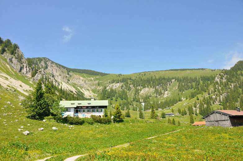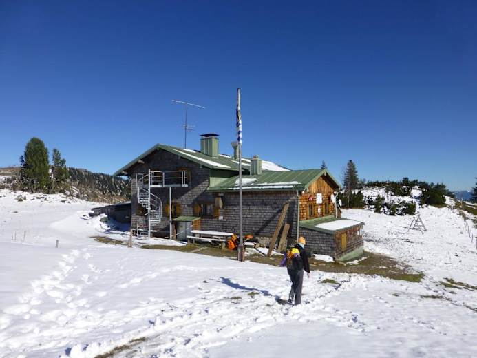 Die Schönfeldhütte - Im Hintergrund der Jägerkamp, ein lohnenswertes Tourenziel Foto: Admin-Team München und Oberland