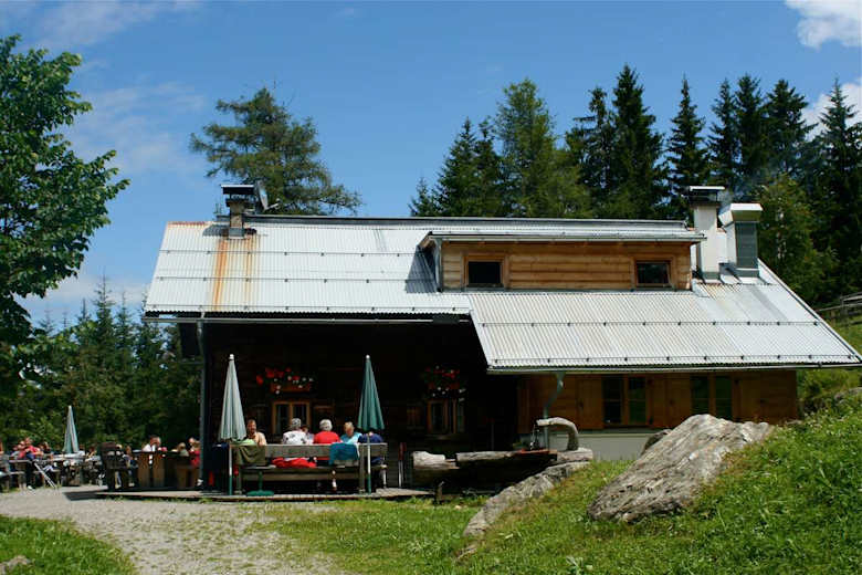 Alternativ kann man auch über den Weg 518, der praktisch gleich lang ist, zur Alm gelangen.