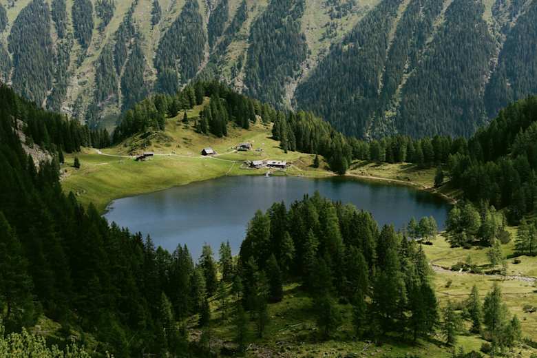 Der Steig kürzt die Kehren der Straße ab und erst im oberen Teil, wo es flach wird, wandert man das letzte Stück auf der Forststraße bis zur Duisitzkarseehütte und zur Fahrlechhütte, die beide direkt am Seeufer stehen.