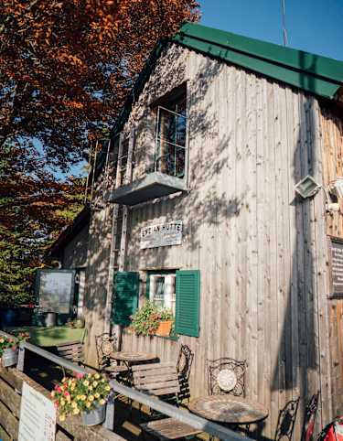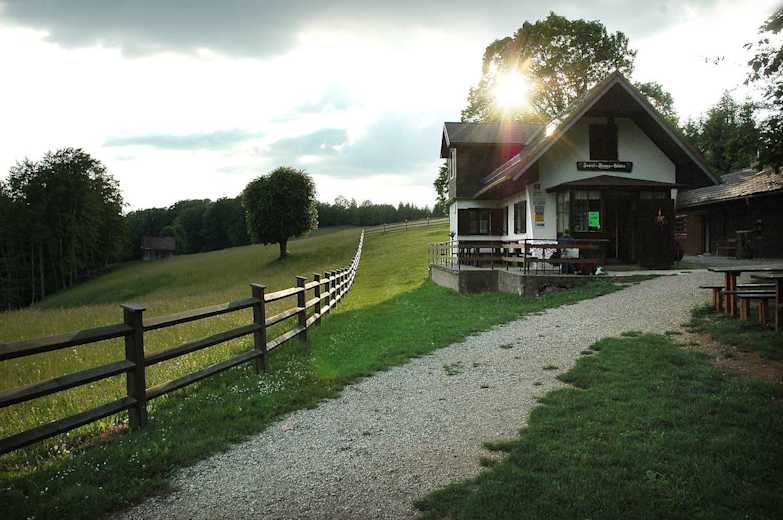 Vom Geißbühel sind es in Folge nur noch wenige Minuten bis zur Josef-Franz Hütte, die auf einer schöne Lichtung steht.