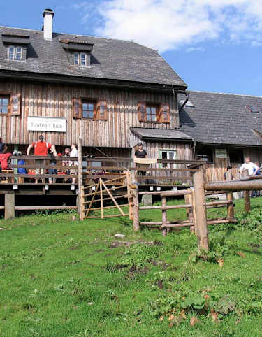 Die nette Josef-Franz Hütte der Naturfreunde befindet sich auf 841 m in den Türnitzer Alpen in Niederösterreich. Sie ist ein beliebtes Ausflugsziel, das von mehreren Talorten aus zu erreichen ist. Eine schöne Wanderung führt von Steinschal über den Geißbühel mit 849 m hinauf zur Hütte.