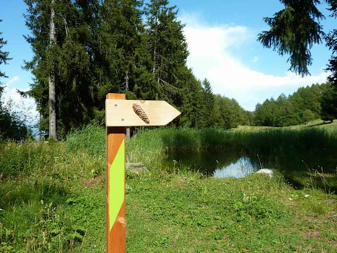 Der Zapfenweg führt über Wald und Wiesen durch die nahezu unberührte Natur der Walliser Alpen und hat einige Highlights zu bieten: den Weiher von Sofleu, die Bisse de Saxon, das Geröllfeld von Dzerjonna, die Alp bei Pra da Dzeu und den Sumpf d'Ouché. Eine gemütliche und äusserst lehrreiche Wanderung im Wallis für die ganze Familie.