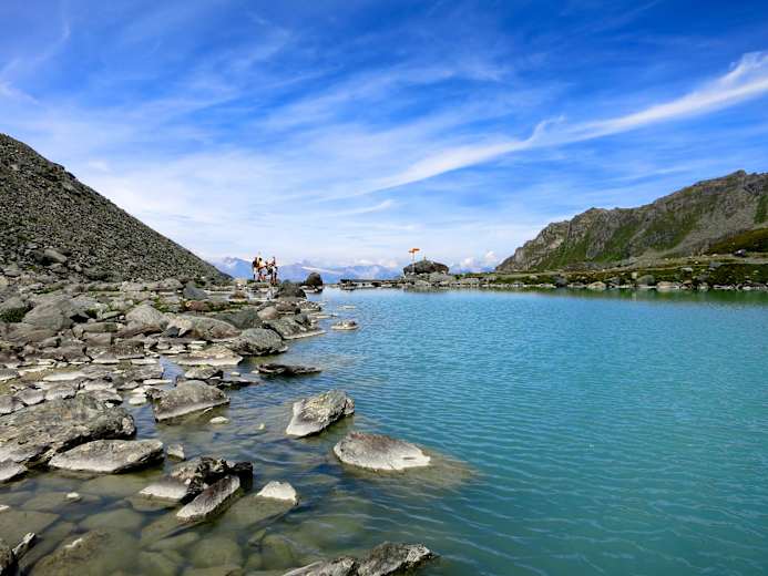 Nachdem man den schönen Bergsee ausgiebig bewundert hat, wandert man zurück zum türkisfarbenen Cleuson Stausee. Am Ostufer Richtung Norden und über die Staumauer nach St. Barthélémy. Via Pra de Mounet geht es zurück nach Siviez.