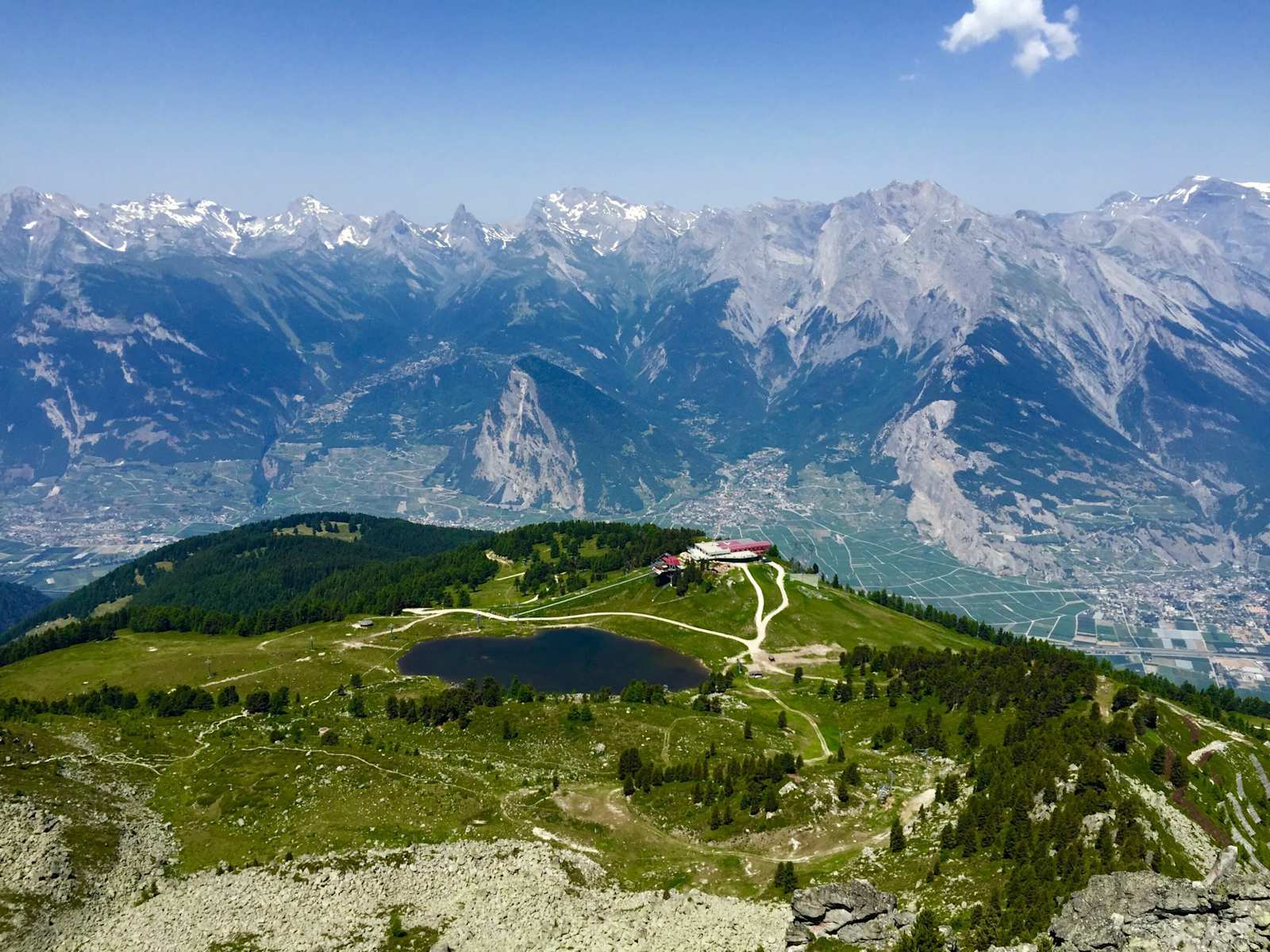 Eine lohnenswerte Rundwanderung im Wallis, die gleich zwei fantastische Aussichtspunkte zu bieten hat: den Dent de Nendaz (2.462 m) und den Basso d'Alou (2.336 m). Auch von der Bergstation der Gondelbahn bieten sich zu Beginn der Tour sagenhafte Tiefblicke auf die Rhoneebene und die umliegenden Gipfel der Walliser Alpen.