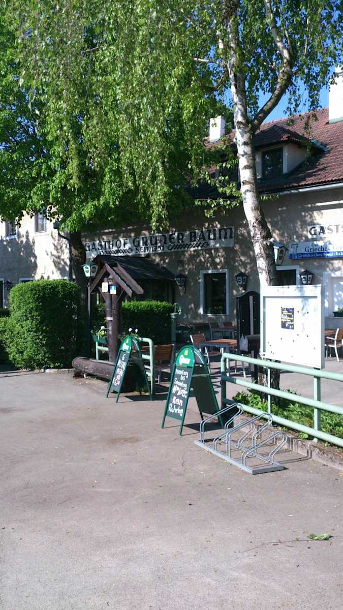 Von der A1 Abfahrt Pressbaum über B 44 und B 13 über Laab nach Breitenfurt. An der T-Kreuzung in Breitenfurt nach rechts abbiegen bis zur Ampelkreuzung bei der Polizei. Dort nach links abbiegen, gleich rechts befindet sich der Gasthof „Grüner Baum“.