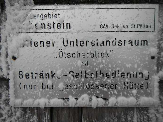 Hinweis zum Unterstandsraum Achtung - Getränke gibts nur im Sommer/Herbst! Foto: Reinhard Wilthaner