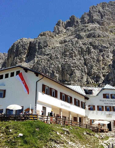 Die Paolinahütte auf 2.125 m ist praktisch so etwas, wie das Tor in den Rosengarten oberhalb des Karerpasses und am Fuße der Rotwand in Italien. Ausgehend vom Karerpass ist sie leicht in etwas mehr als einer Stunde zu erreichen. Wer nicht zu Fuß gehen möchte oder kann, der nimmt einfach den Sessellift, der direkt bis zur Hütte fährt.