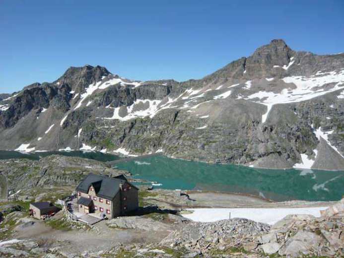 Ab der Scharte folgt man dem Weg Nr. 102, der anfangs recht steil abwärts zum Hochwurtenkees führt. Danach geht es oberhalb des Stausees zur Duisburger Hütte auf 2.572 m.