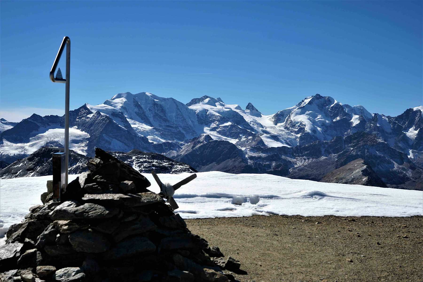 Drei Dreitausender auf einen Streich? Leider nein, denn beim Monte Breva, beim Piz La Stretta und beim Sòmp i Crap Néirhandelt es sichum ein und denselben Berg. Die Mühe des Anstieges lohnt sich trotzdem, da die abwechslungsreiche Landschaft wie die Aussicht auf die Gletscherriesen der Berninagruppe begeistern.