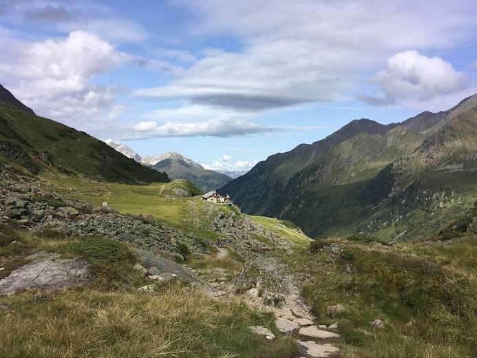 Die kleine, urige Alpein Alm befindet sich im Oberbergtal in den Stubaier Alpen in Tirol. Sie steht auf 2.040 m, praktisch auf halbem Wege zur Franz-Senn-Hütte.